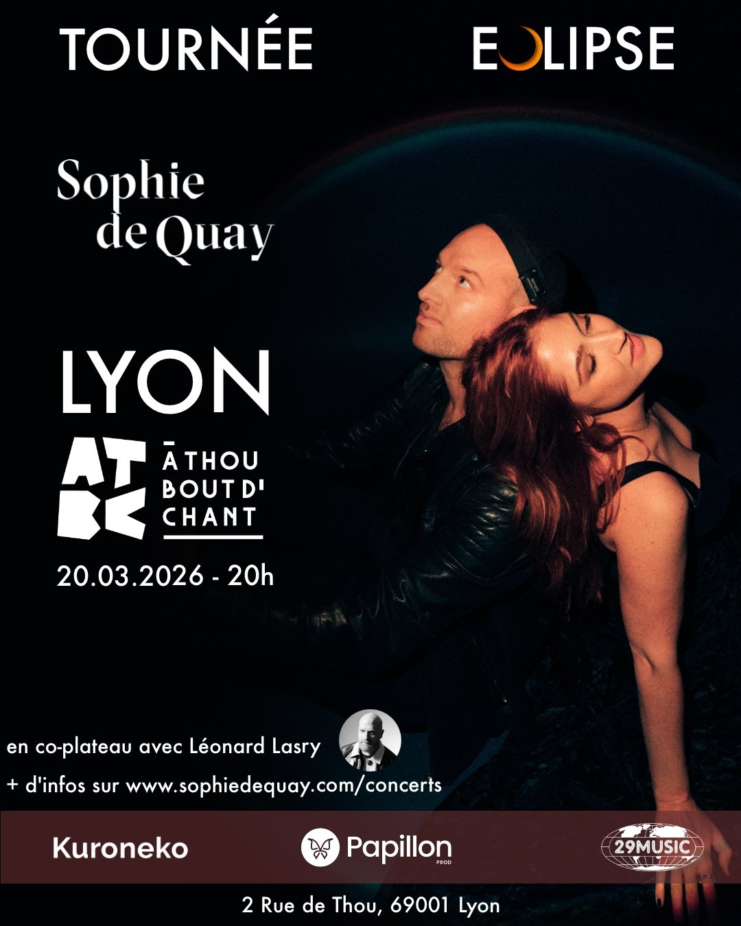 Après avoir présenté son nouvel album Éclipse à Paris, en Suisse, en Chine et au Luxembourg, la chanteuse Sophie de Quay revient sur la scène lyonnaise avec une pop francophone touchante et lumineuse.